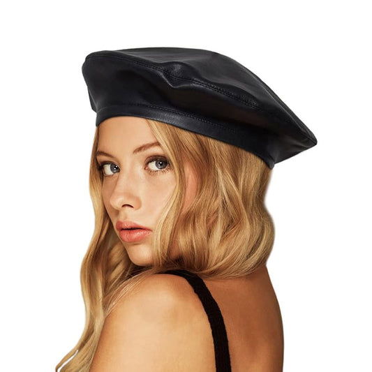French Women's Beret Hats PU Leather Artist Painter Cap Classic Solid Style