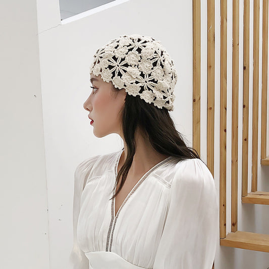 Crochet Beret Women Cotton Skull Cap Handmade French Hat