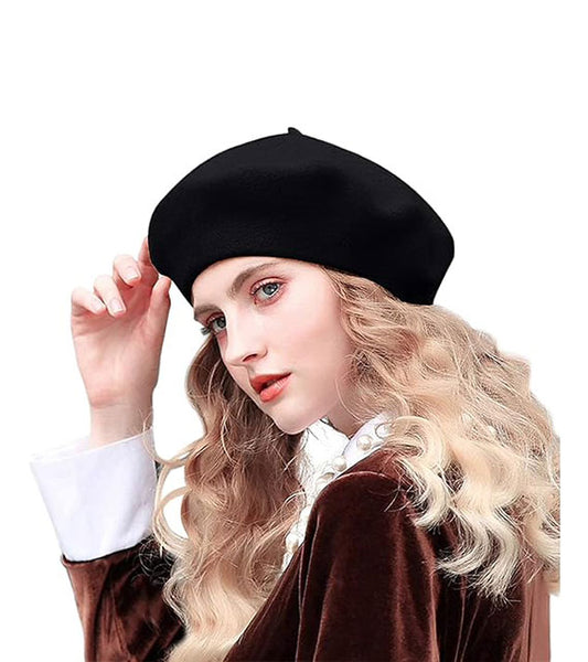 Black Berets Womens French Classic Beanie Hat Wool Beret Solid Color
