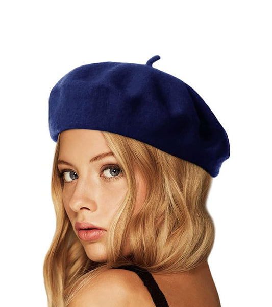 Blue Beret Wool Hat Solid Color French Style Winter Warm Cap for Women Girls Lady