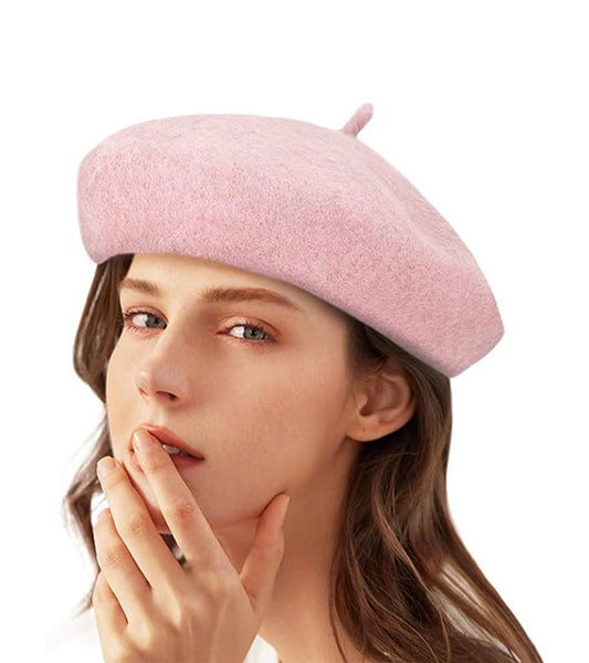 Pink Berets Wool French Hat Solid Color Cap for Women Girls