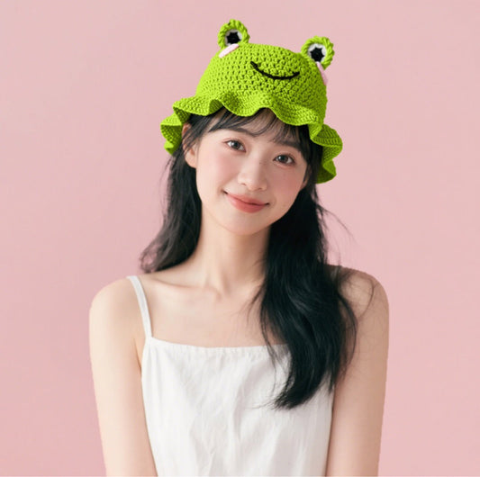 Frog Crochet Bucket Hat for Students & Kids - Packable Sun Hat with Adorable Cartoon Design