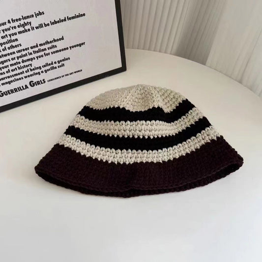 Handmade Crochet Bucket Hat for Women & Men - Striped Fisherman Style Winter