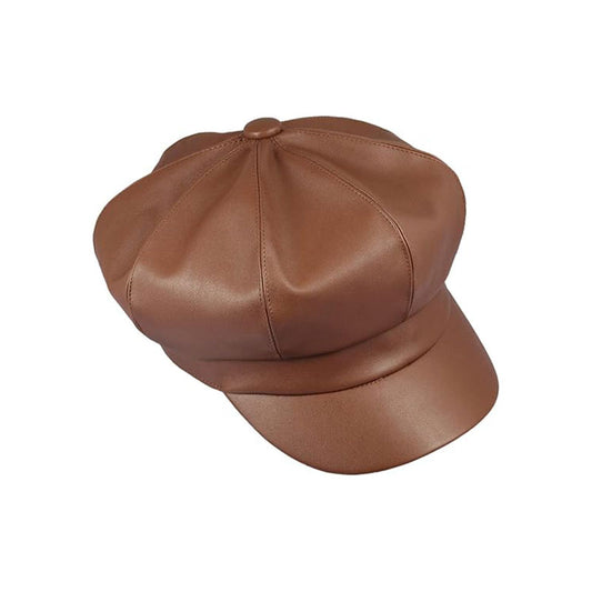 Newsboy Cap Women PU Leather Hat Cabbie Painter atsby Ivy Beret