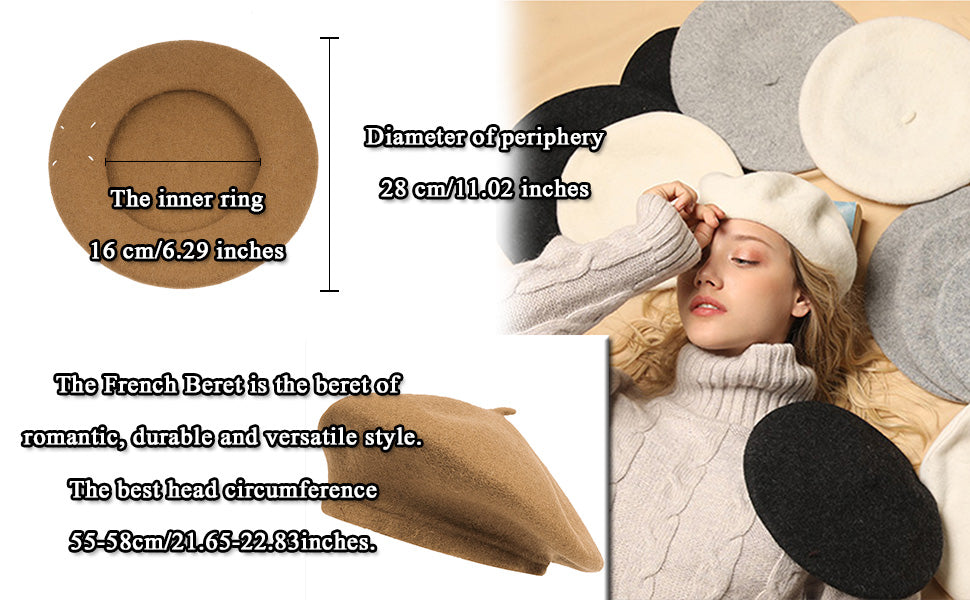 French wool berets are not only available in classic white, but also in several other colors, which makes white beret cap very suitable for different aesthetic preferences and dressing needs. No matter what color you like, the high-quality wool material can provide the beret with a good feel and shape retention, adding a unique fashion flavor to the overall look.